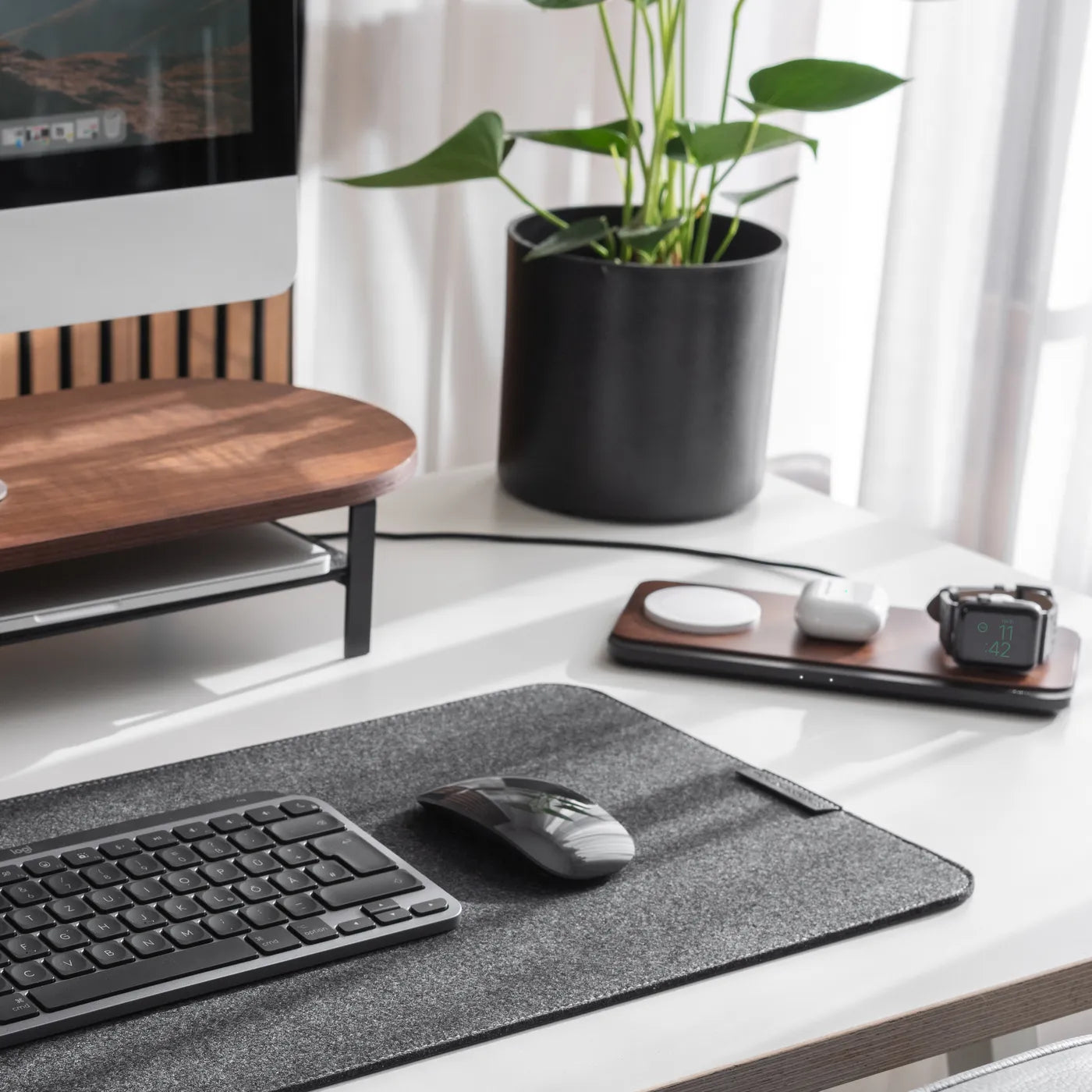 A cluttered workspace stifles creative thinking. With smart desk accessories, you can eliminate daily cable clutter and create clear visual organization. The custom-fit storage compartments on our monitor stands provide hidden storage for your keyboard, mouse, and notes. Combined with our MagSafe charging stations and the non-slip 2-in-1 desk mat, you’ll create a tidy, minimalist setup.