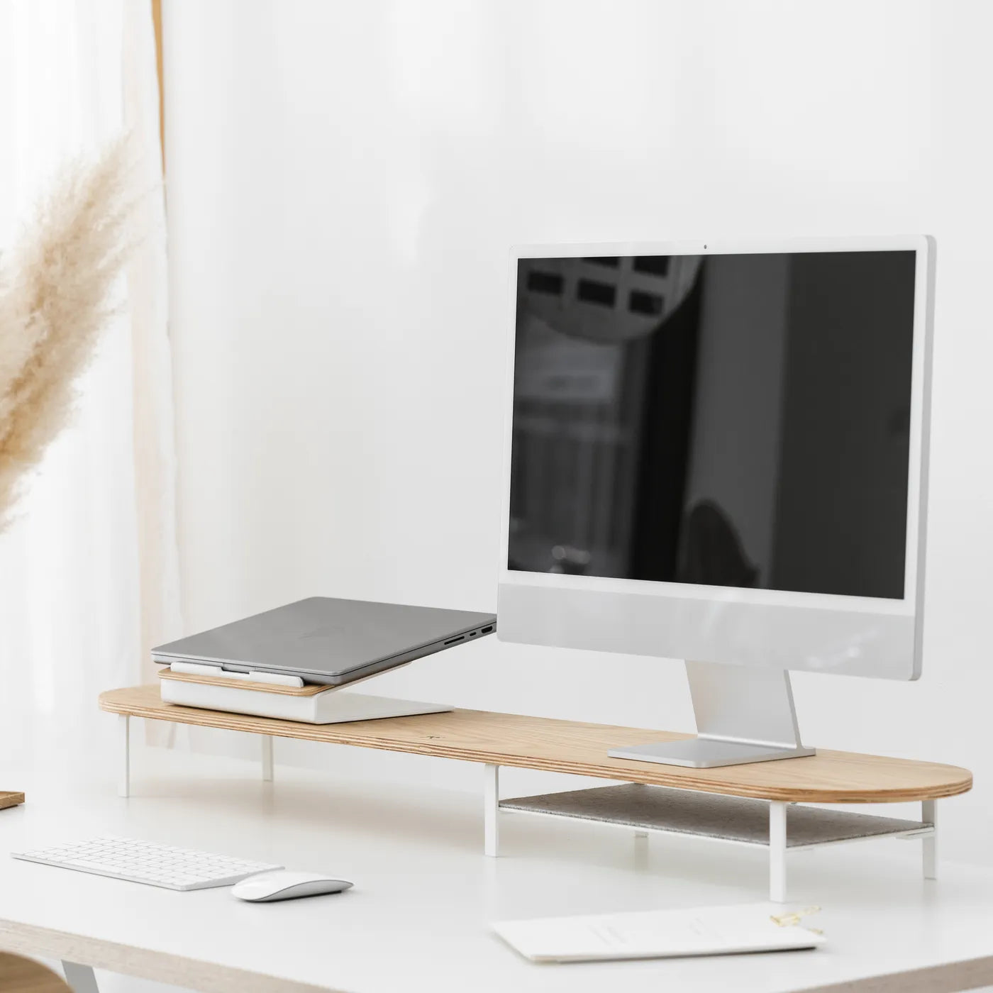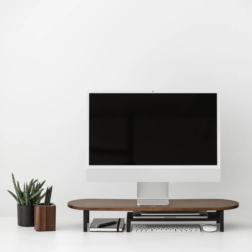 Each of our desk accessories is crafted from certified wood and hand-finished with natural wax. This meticulous craftsmanship ensures a secure, scratch-free surface for your iMac, monitor, or MacBook. Since wood is a natural product, every grain makes each piece truly one-of-a-kind. You’re investing in a durable setup that makes a strong statement about eco-conscious design.