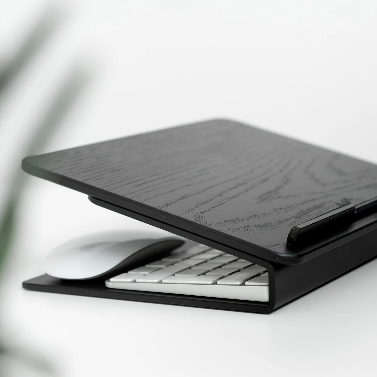 Clear some space on your desk and enjoy an instantly tidy workspace. Our laptop stand provides the perfect storage space for your keyboard and mouse.