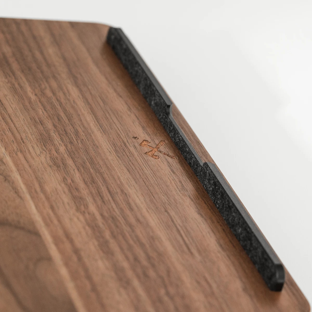 Bring natural warmth to your home office. Each of our laptop stands is crafted from certified American walnut or oak and finished by hand with natural waxes. Combined with a solid base made from recycled aluminum, the result is an extremely stable, timeless design. Since wood is a living, natural product, each stand features a completely unique grain pattern. You’re not buying a mass-produced item, but a one-of-a-kind statement piece for your setup.