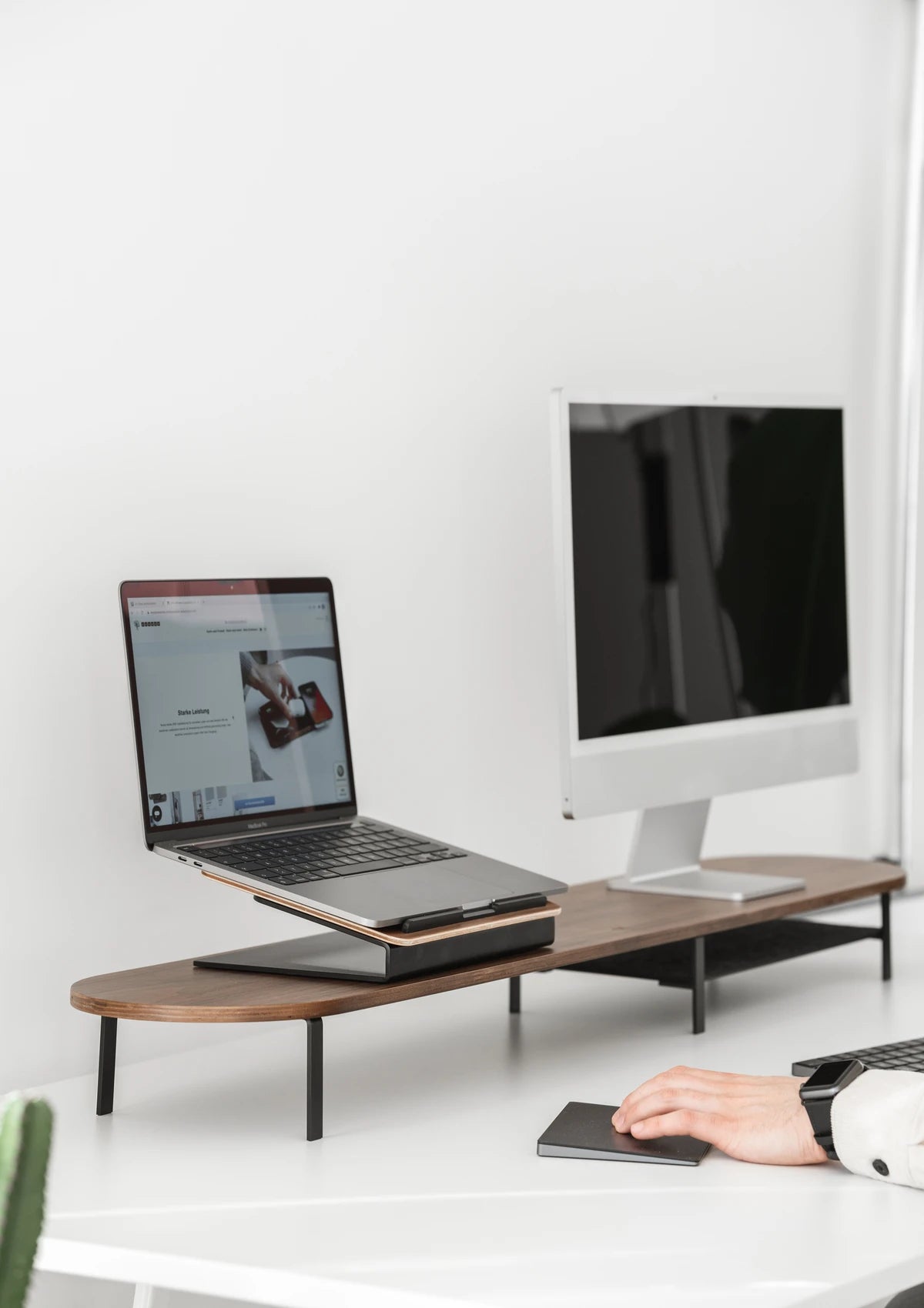 Spending many hours at a laptop often leads to tension in the neck, shoulders, and back. Our laptop stand is the efficient solution: it raises your screen to eye level and positions it at an ergonomically optimized 15° angle. This relieves strain on your cervical spine, automatically promotes an upright sitting posture, and effectively prevents long-term postural problems. Transform your setup into a healthy, productive workspace—without compromising on design.