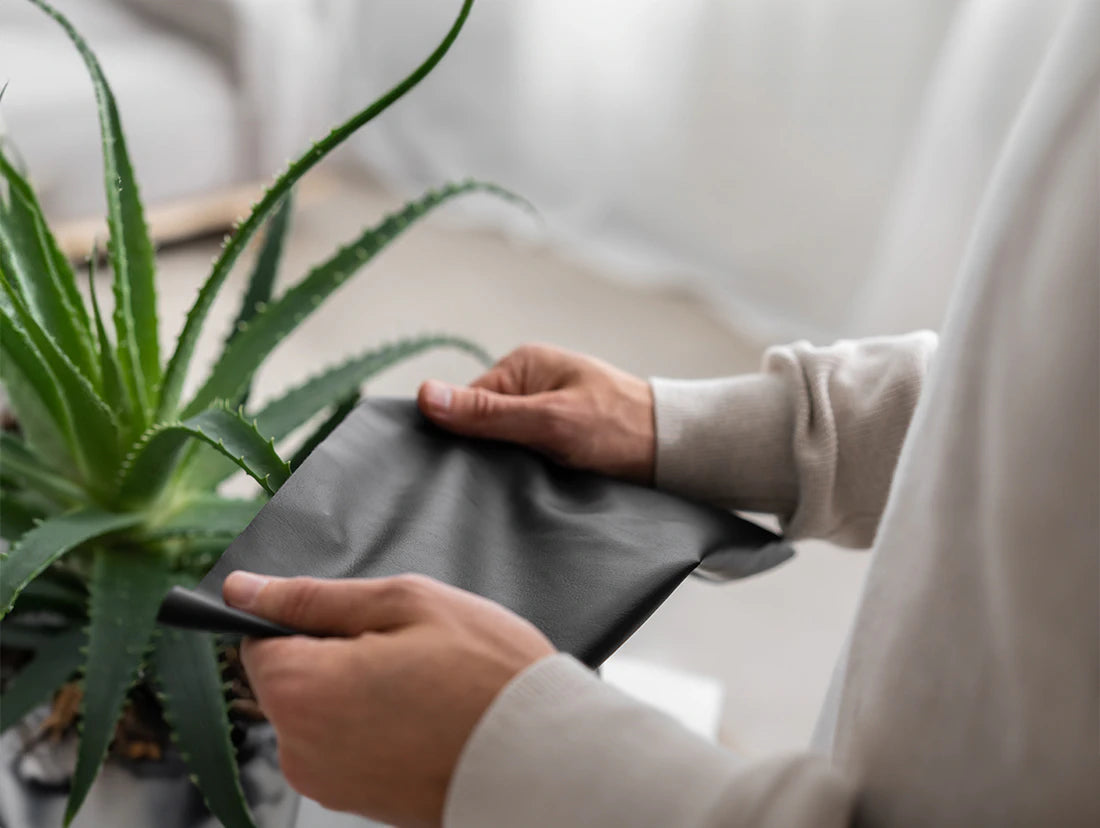 After years of development, we have finally created AloSkin. A durable, high-quality leather alternative made from aloe vera fibers, natural rubber and post-consumer PU. Made for leather fans who care about the environment