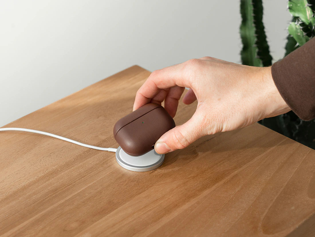 But safe! All of our AirPods cases are compatible with Apple's MagSafe technology and can be easily charged with the MagSafe Wireless Charger. This gives you even faster charging power of up to 15W by simply placing your AirPods in the center of the charging pad. You should feel a magnetic pull there and the LED light will turn on - and your AirPods will be charged!