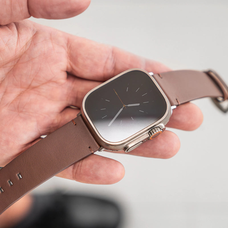 Experience style and sophistication with our Leather watch band, available in two timeless colors: midnight black and chocolate brown. This handmade piece elevates your modern Apple watch into a luxurious, classy statement piece.