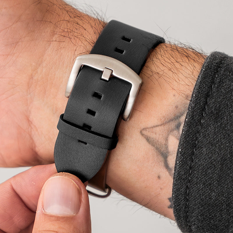 Slim, lightweight, and soft! Its minimal design and ultra soft leather material provides a smooth and comfortable wearing comfort! Unlike usual bulky leather bands our watch bands quickly adapts to the wrist.