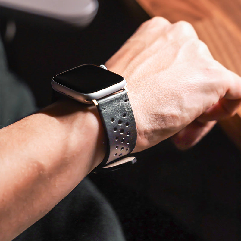 Discover our first Apple Watch Series 1-11 & SE plant-based leather strap in the Motion Bundle - Made from the finest, sustainable leather and premium stainless steel, the strap not only offers maximum comfort, but also a classic look. Each bracelet is carefully crafted by hand, embodying our promise of quality for handmade unique pieces. A subtle fabric seam gives your premium bracelet an additional touch of elegance and underlines the high-quality, clear design language. Our leather strap is more than just an accessory for your Apple Watch - it is a design statement of timeless elegance and the highest quality. Ideal for everyday wear, the office and special occasions!