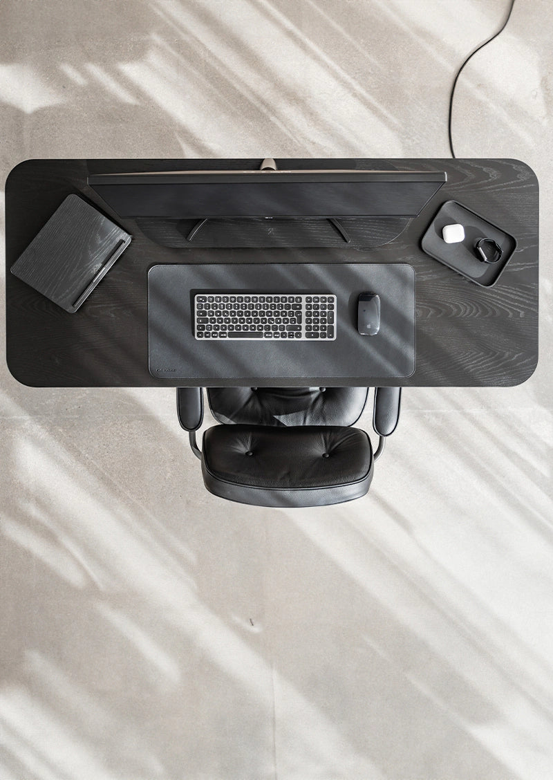 Save space by storing your keyboard, mouse & co. on the rear shelf. High-quality felt on the practical holder allows convenient opening & protects against scratches!