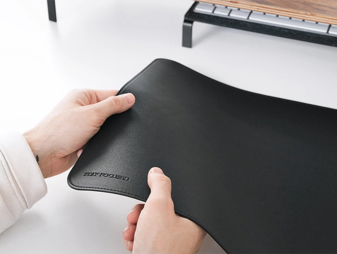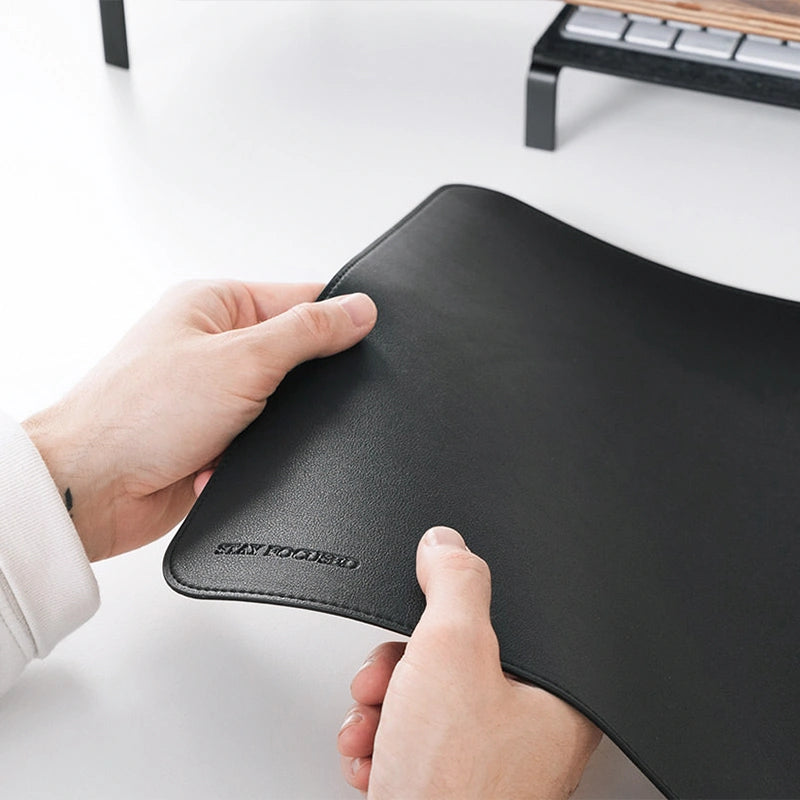 Our premium desk pad in deep black comes in a classic look and beautifies any desk setup. Experience an organized work environment, improved operation of your mouse and eliminate annoying fingerprints!