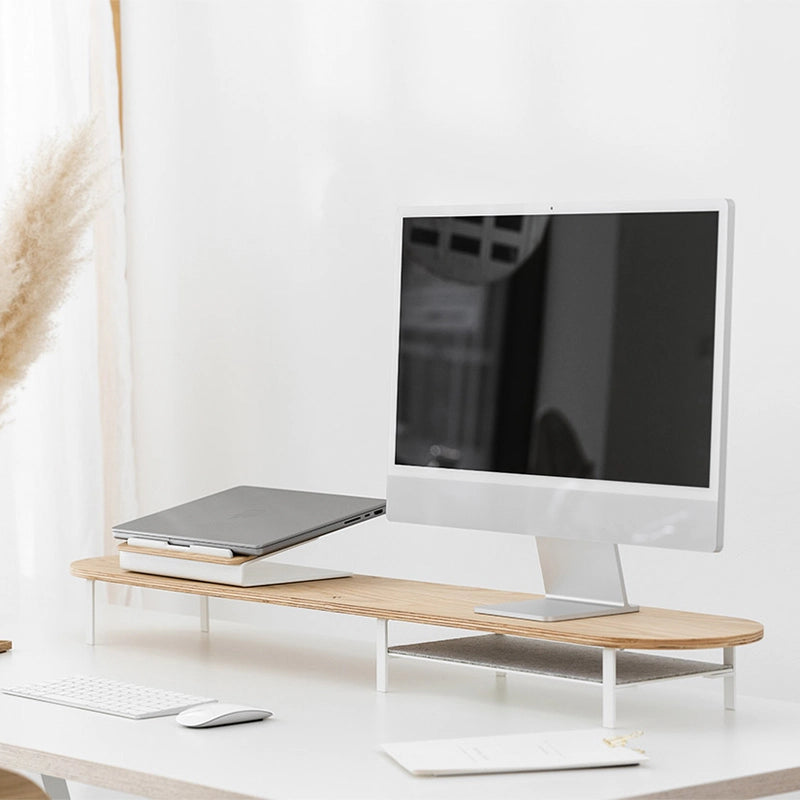 Select walnut and oak wood combined with a matte recycled aluminum base give the monitor stand a sustainable design.