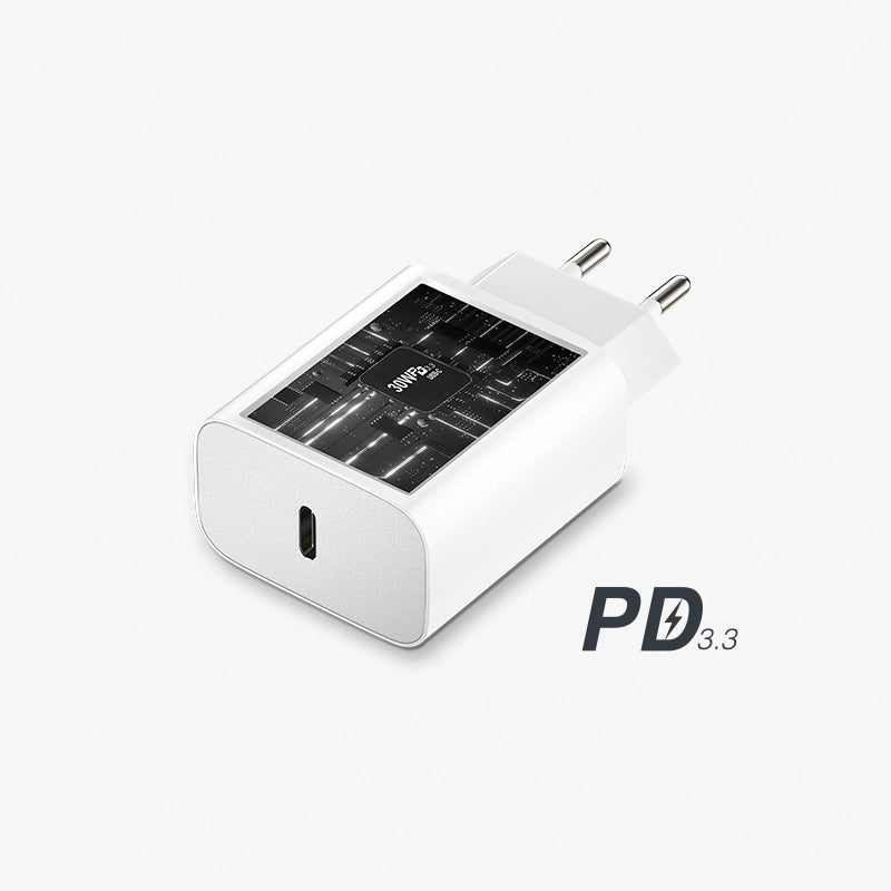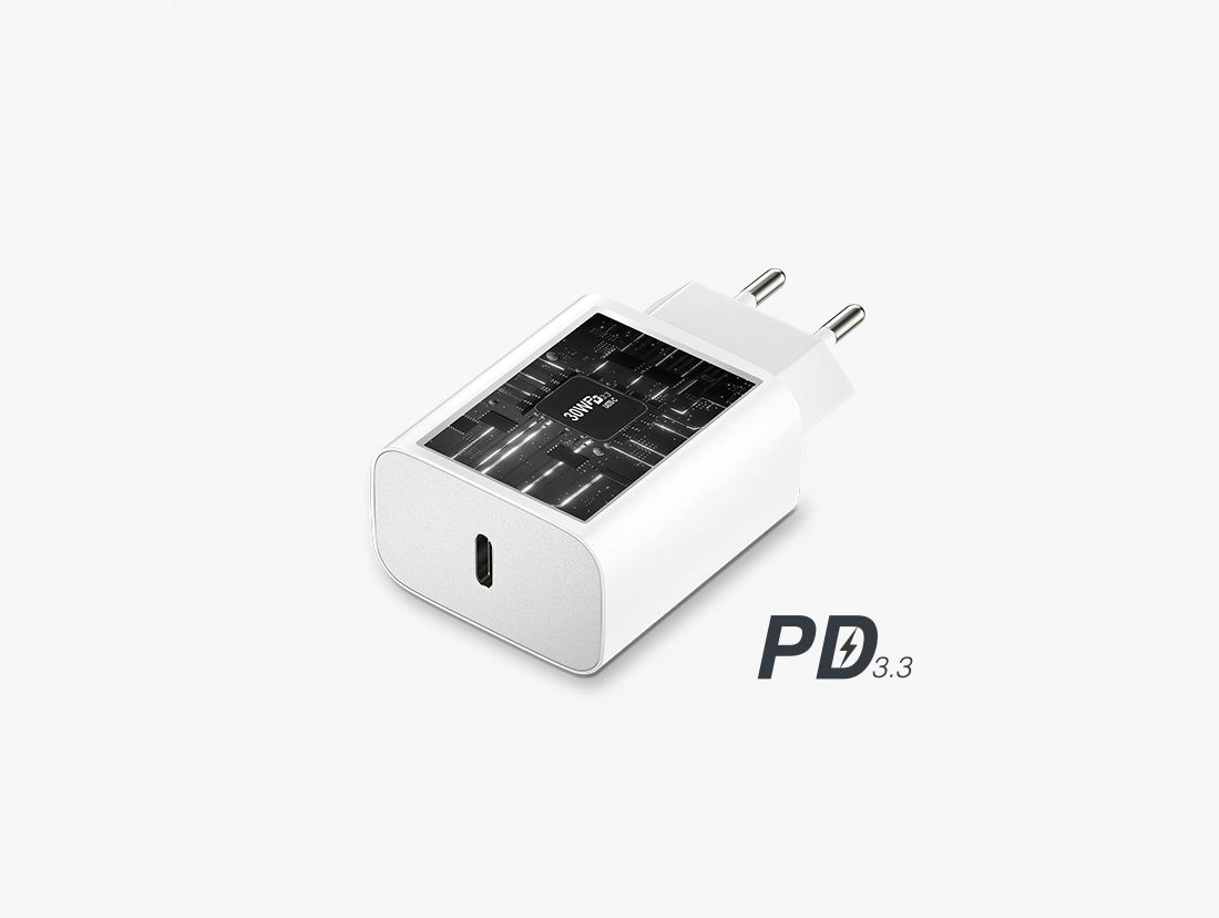 Thanks to the new Power Delivery standard with smart chip, the 30W USB-C power adapter and end device communicate with each other to set the perfect power for your device. This guarantees stable & safe charging!