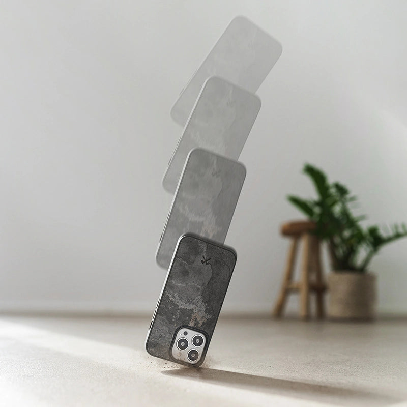 The unique iPhone 11 Pro Case made of hand-selected real stone and recycled silicone protects your iPhone against falls from up to 2 m! Your iPhone stone Case is a real piece of nature and comes with very individual grain.