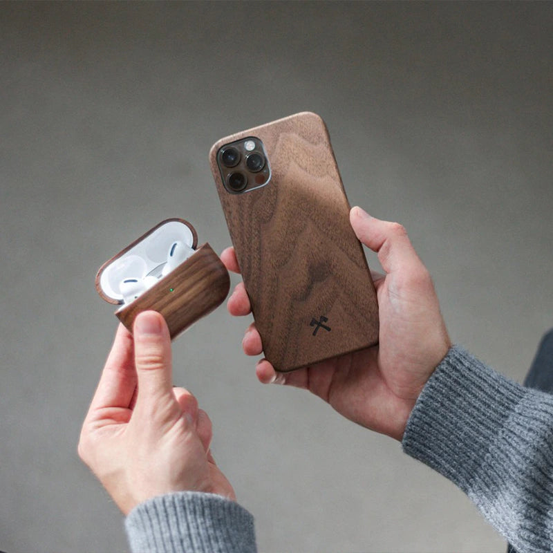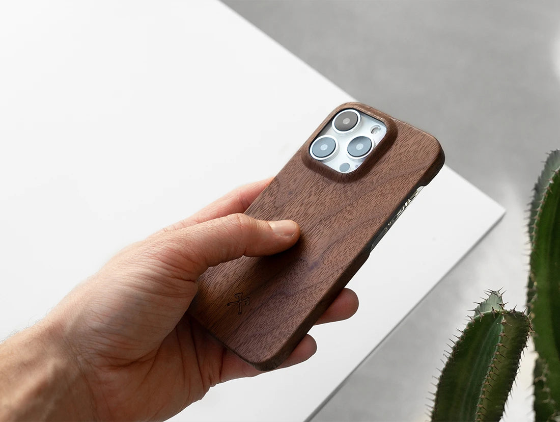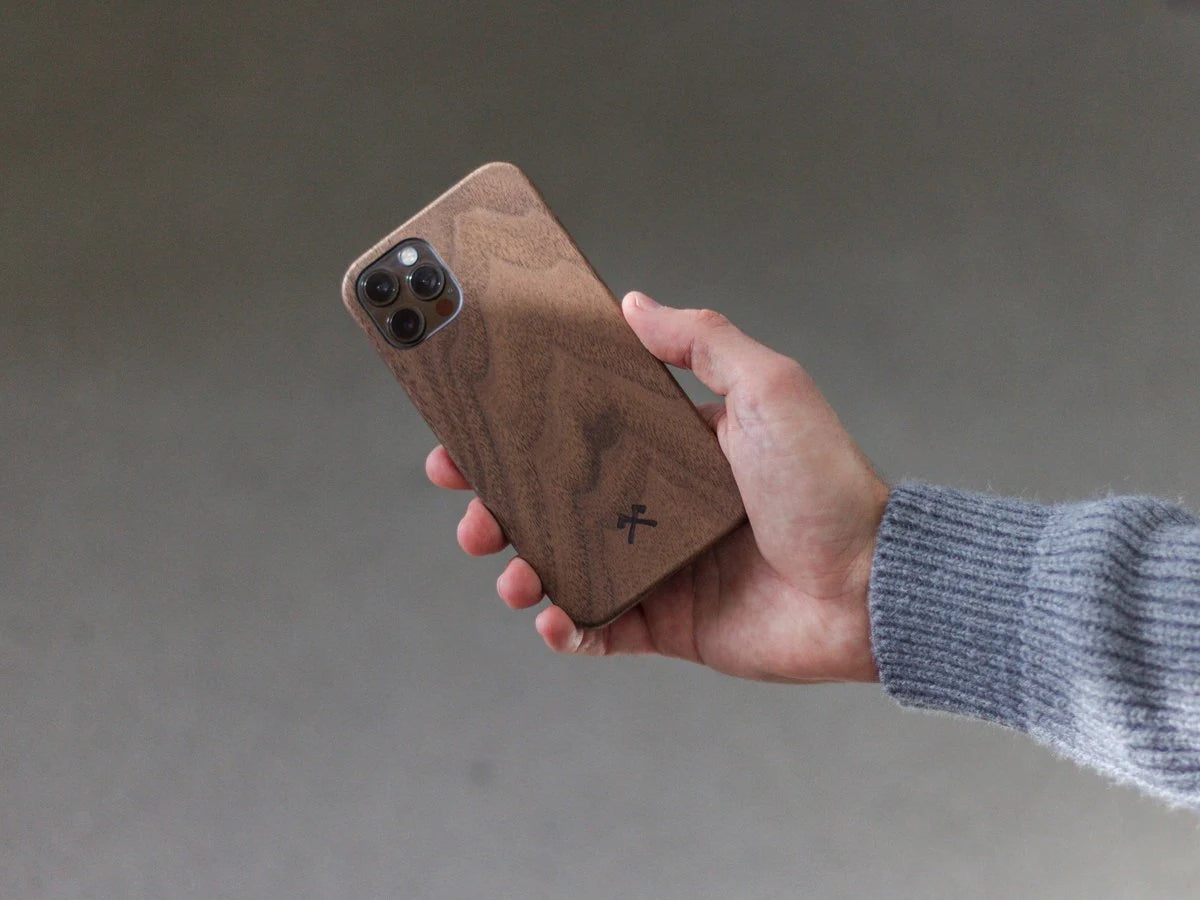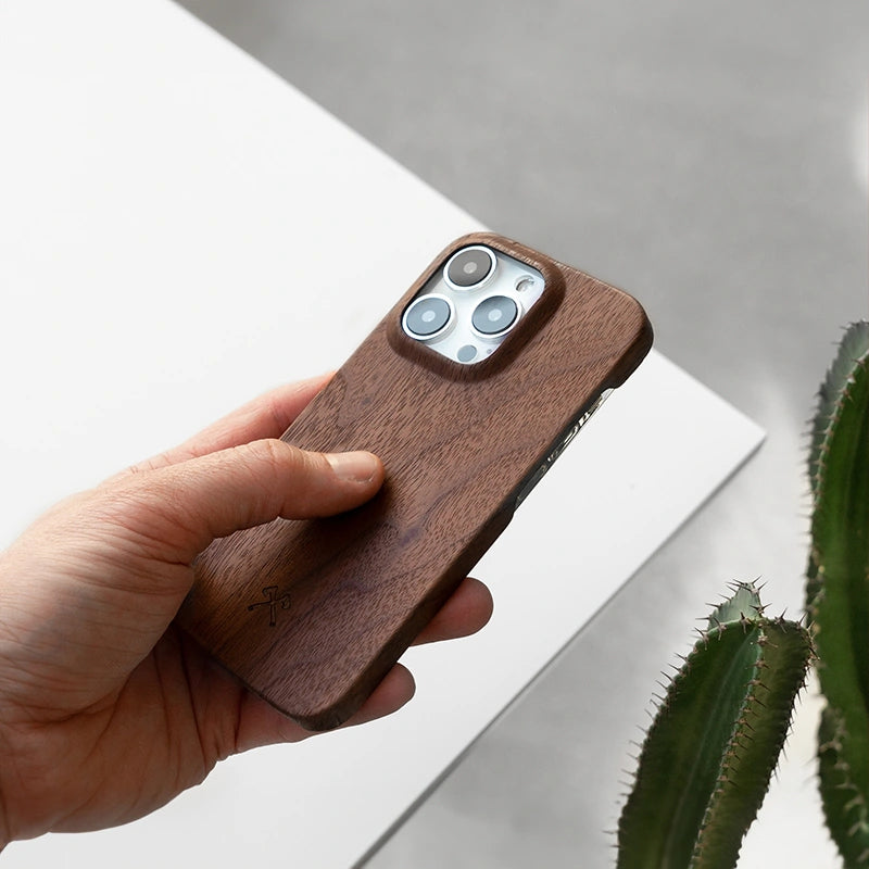 Thanks to the ultra-thin wood layer, using the Apple MagSafe© Charger is no problem at all. This keeps the full magnetic force between your iPhone and your wireless charger and provides the necessary hold. The leather wallet from Apple also has a certain hold. However, we would like to point out that the MagSafe Leather Wallet does not have the strongest magnetic pull and can therefore slip on the smooth surface of our Slim Case. But we are already working on our own solution!