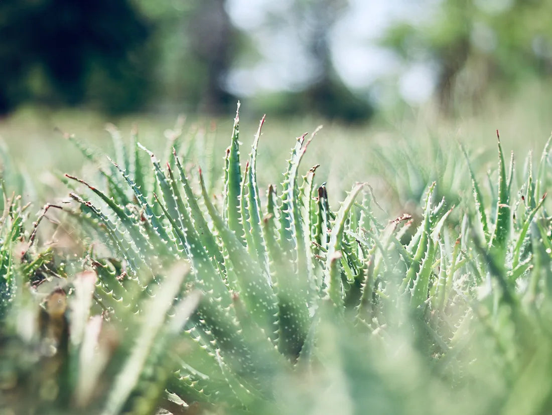 The aloe vera fibers we use for our production are created as a by-product in the cosmetics industry. After extracting the juice of the plant, we take the leftover dried leaves and use the "waste" to create something new. This results in great environmental savings in terms of resource consumption, land use and energy compared to making or harvesting a new material. (The leaves are ground into a very fine powder and mixed with about 30% post-consumer polyurethane. To obtain a stable leather material, this mixed material is applied to a tear-resistant roll of vegetable fabric. The rolls are heated to produce a weather-resistant and durable innovative fabric with a rich leather texture.