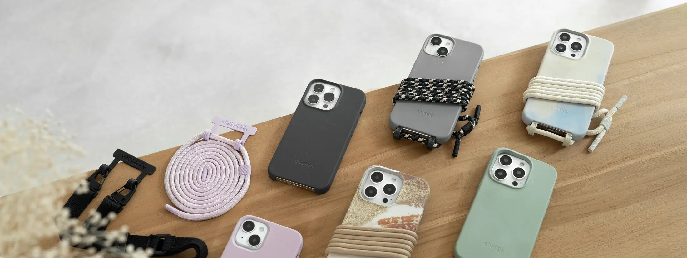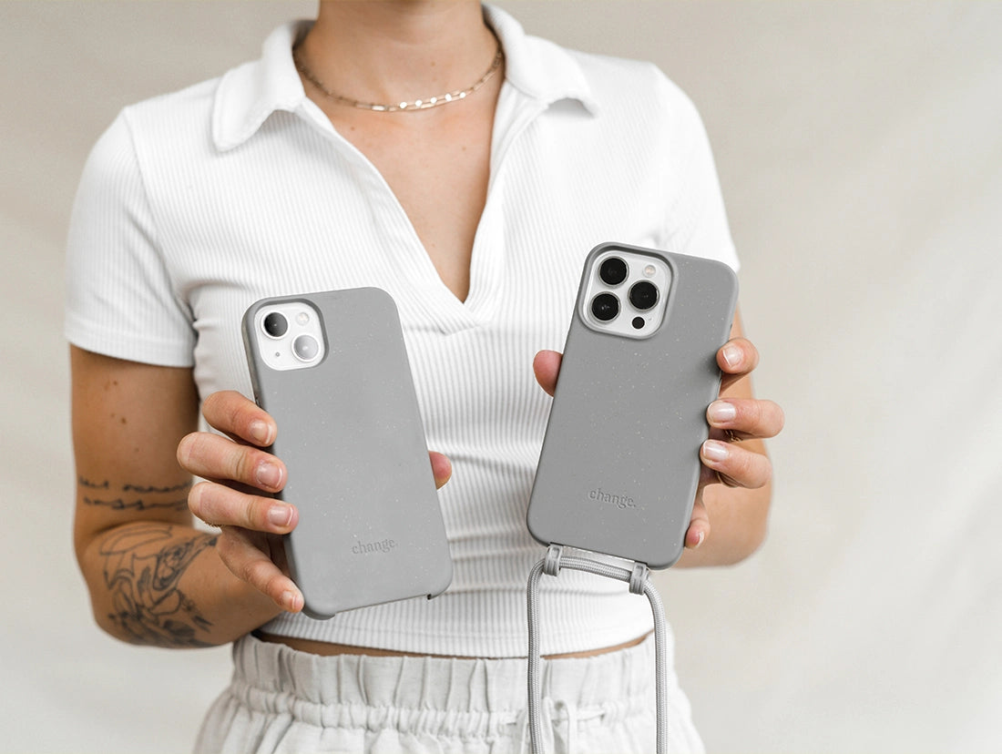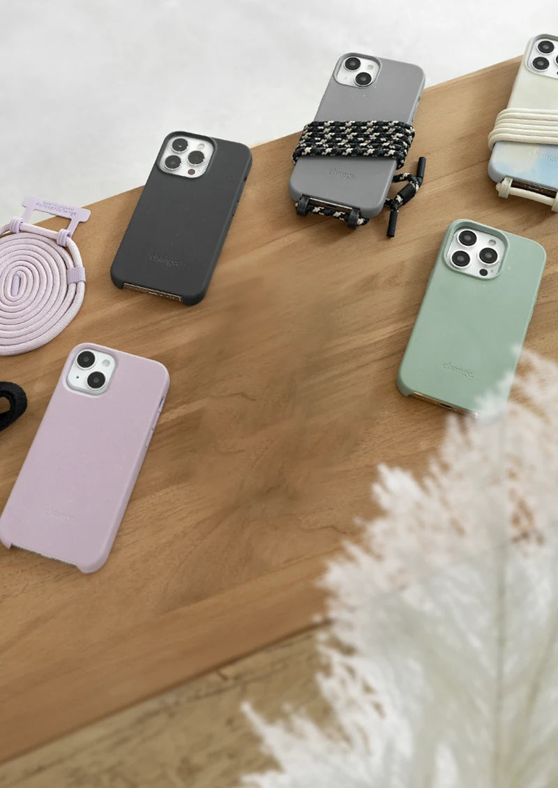Our modular phone cases give you the opportunity to use a normal iPhone Case and in seconds transform it into a practical phone chain. With the detachable cords, you can wear endless combinations and match them to any outfit. Plus, our interchangeable cords are simply more sophisticated than other systems. While other cords keep falling out of the necklace case, our cell phone cords can be properly clicked in, so they can even be easily swung around without falling out again. Last but not least, we offer you the sustainable and resource-saving alternative to conventional plastic cases! One of our most important goals is to avoid as much plastic as possible in our products, production but also in everyday life! With our brands Woodcessories and Change we are on the right track to soon become completely plastic-free! Our outer packaging is made of at least 99% recycled paper and low-pollutant soybean ink, which makes it completely environmentally friendly and compostable. With our reforestation campaign you are also supporting an important climate missionby planting a tree for every necklace case sold.