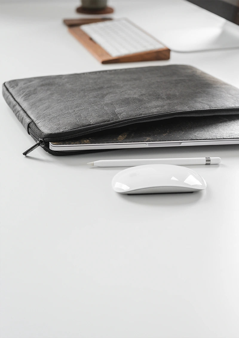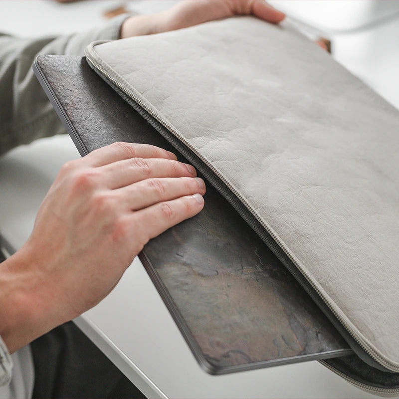 High-quality laptop sleeve made of water-repellent, durable kraft paper. Reliable protection against wind & weather!