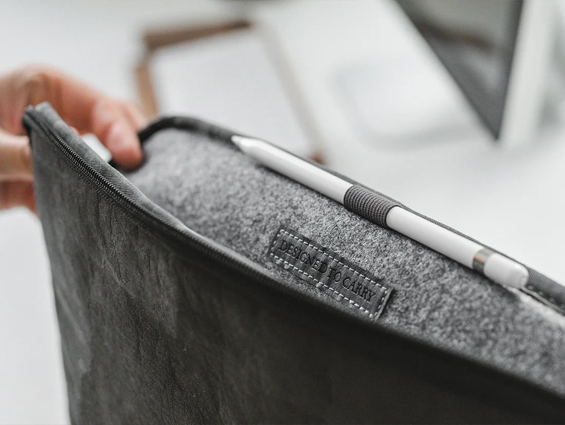 Durable felt fabric made from recycled PET bottles gently protects your MacBook from scratches & incidentally reduces the production of plastic waste and microplastics!