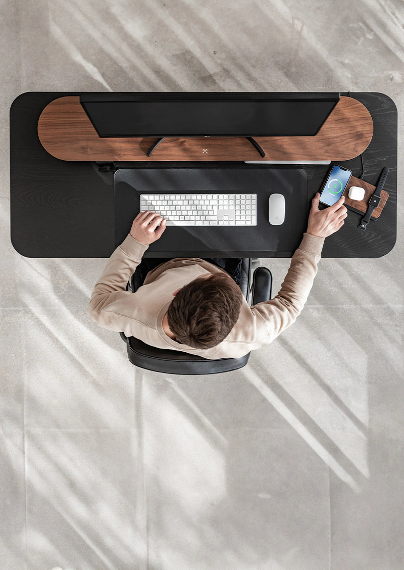 You can choose between three unique styles to suit your interior and your desk: Whether it's elegant walnut wood, a clear oak design or a classic black look. Create a perfect working atmosphere and choose your favorite