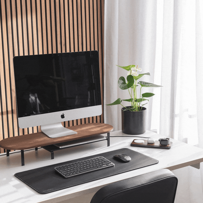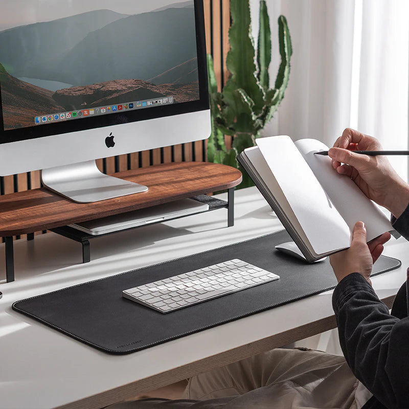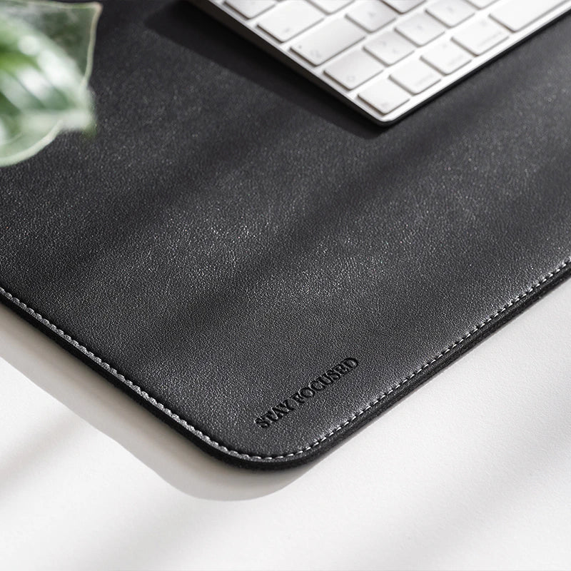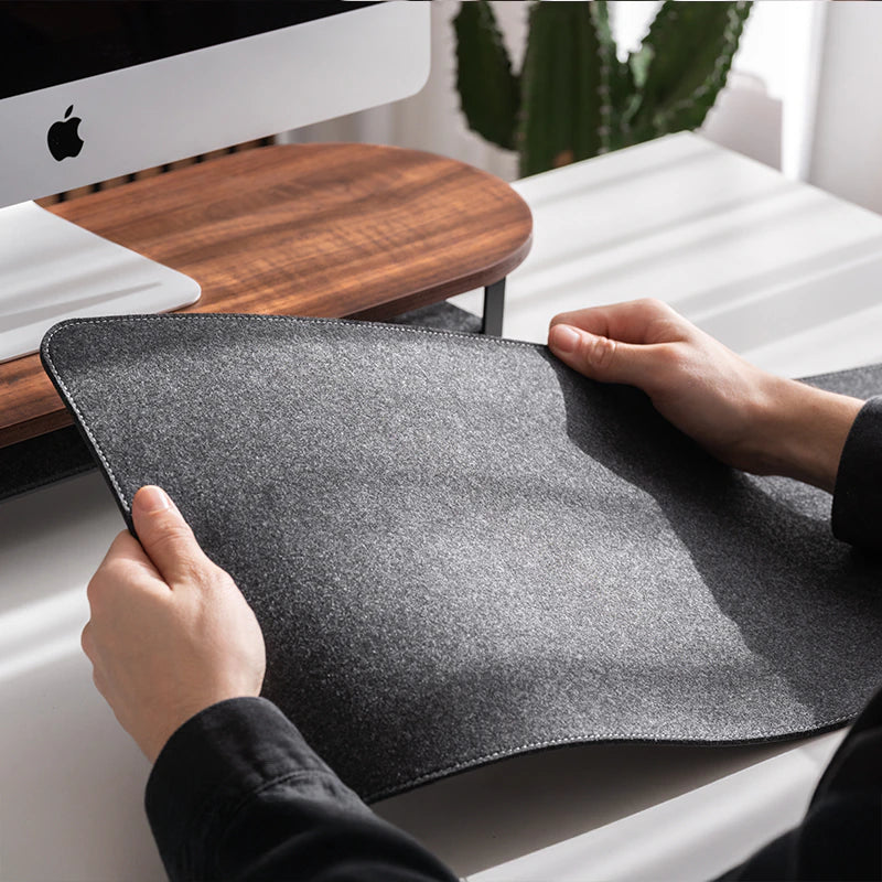 Our premium desk pad comes in a classic look and enhances any desk setup. Experience an organized work environment and improved mouse control!